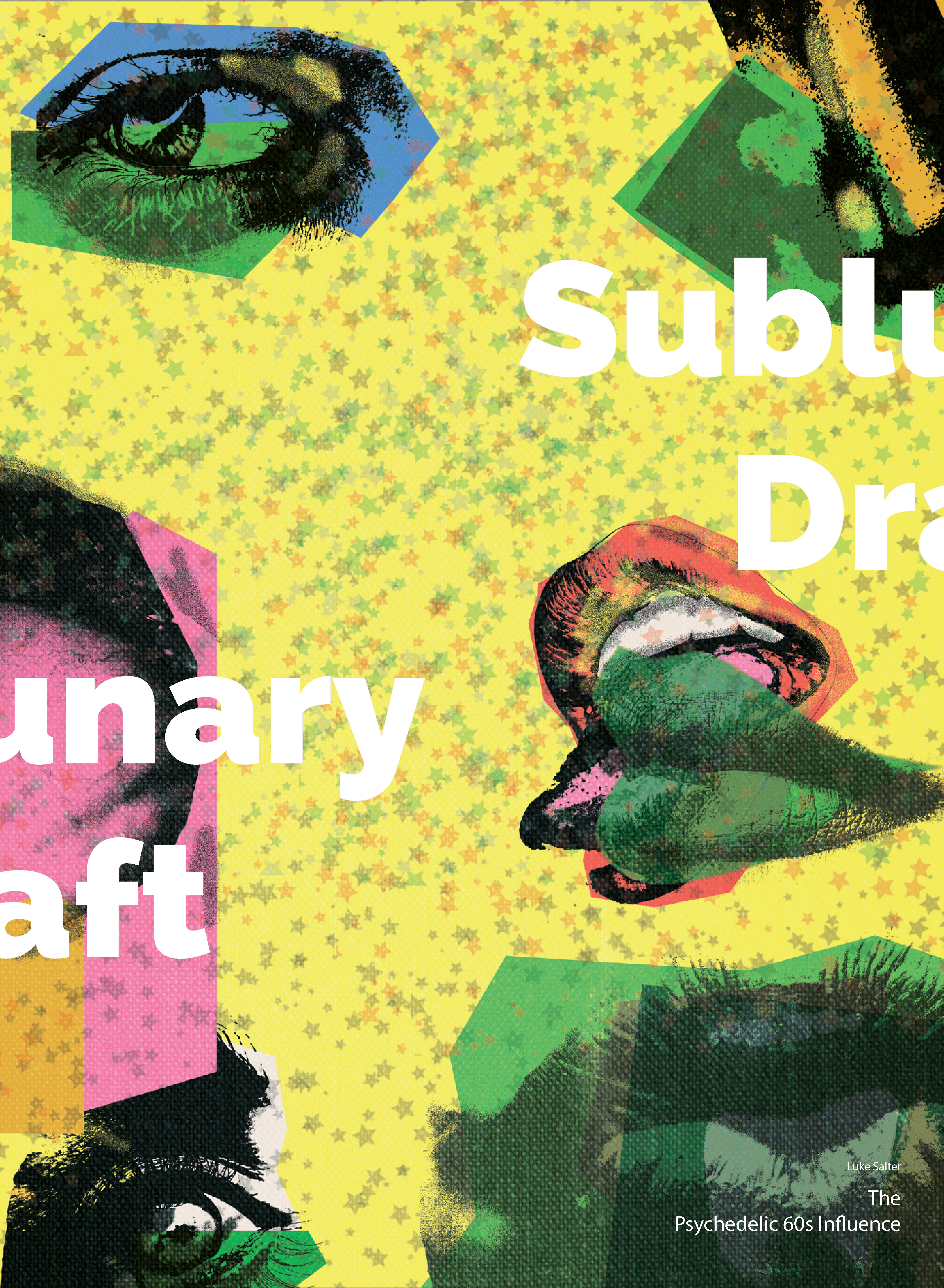 The title “Sublunary Draft” represents both the psychedelic poster creation process full of experimentation and many iterations. It also represents the anti-war sentiment and opinion of the American youth during the same time period.